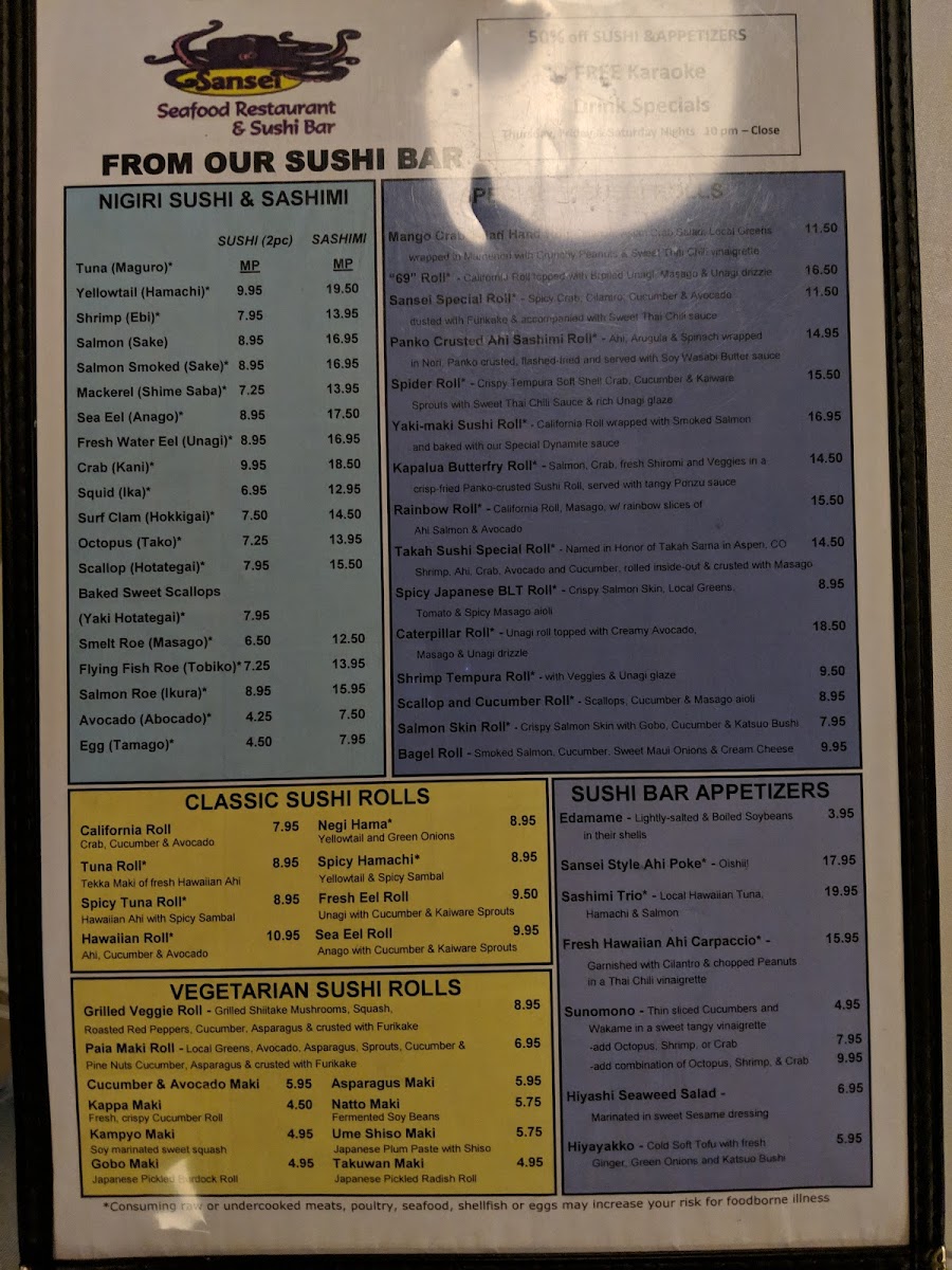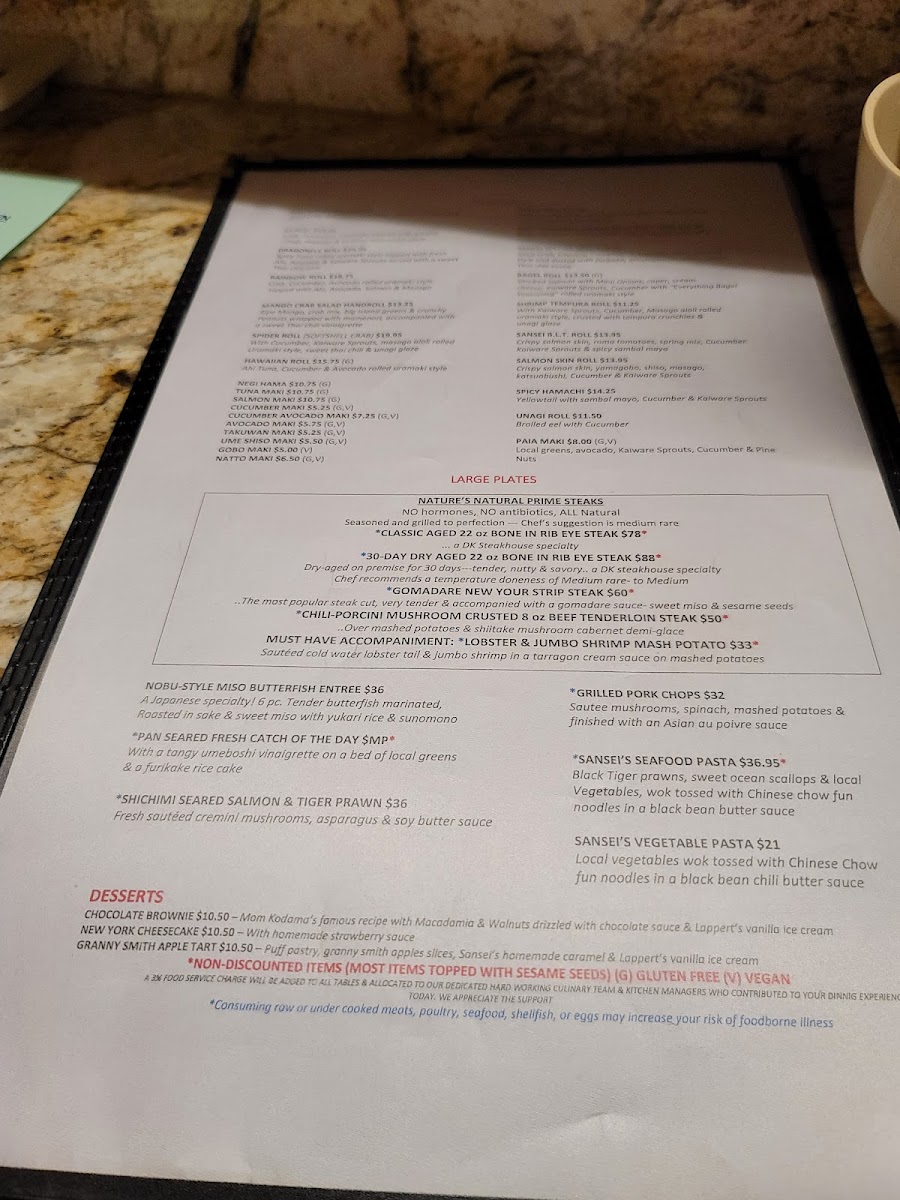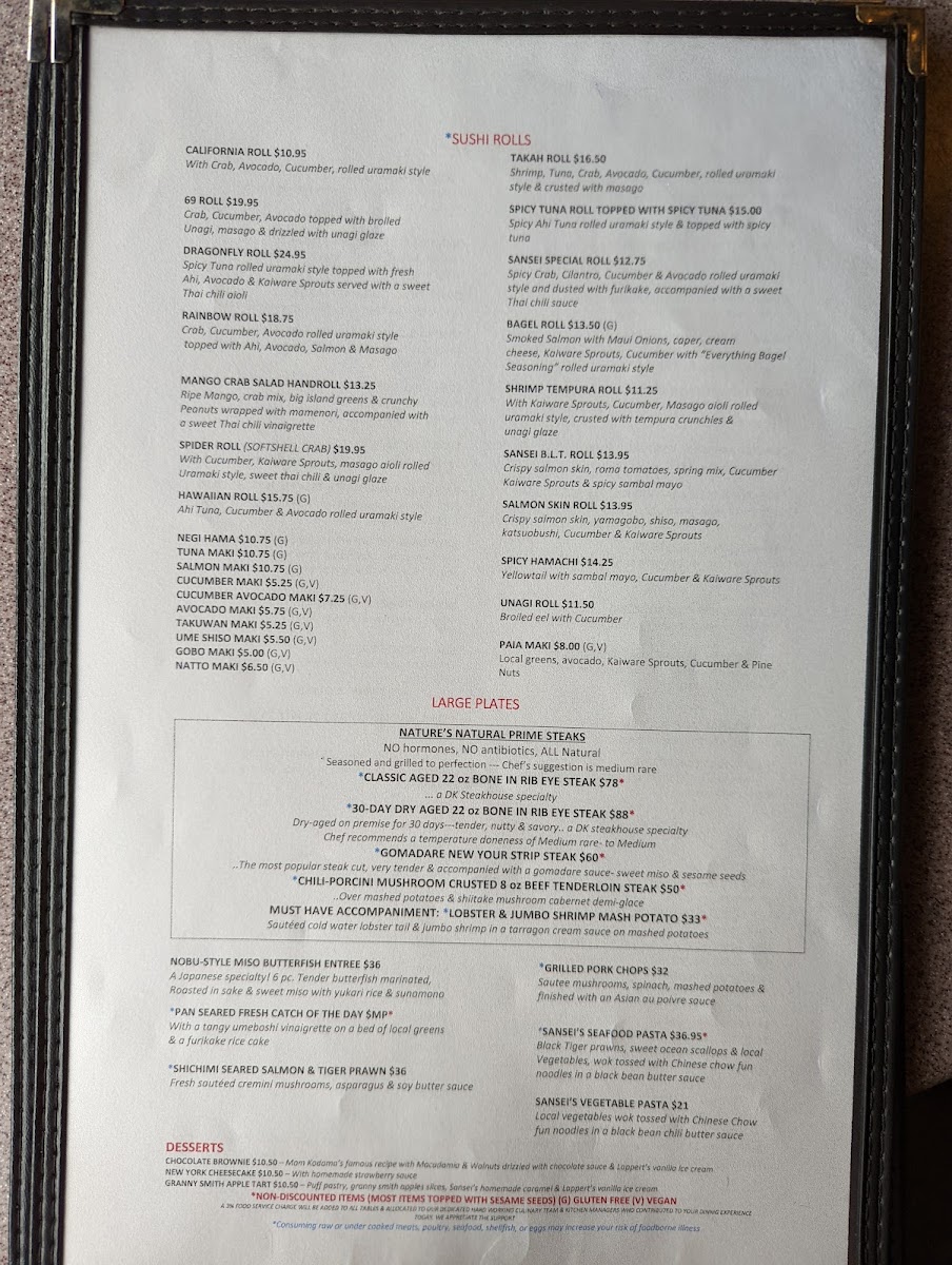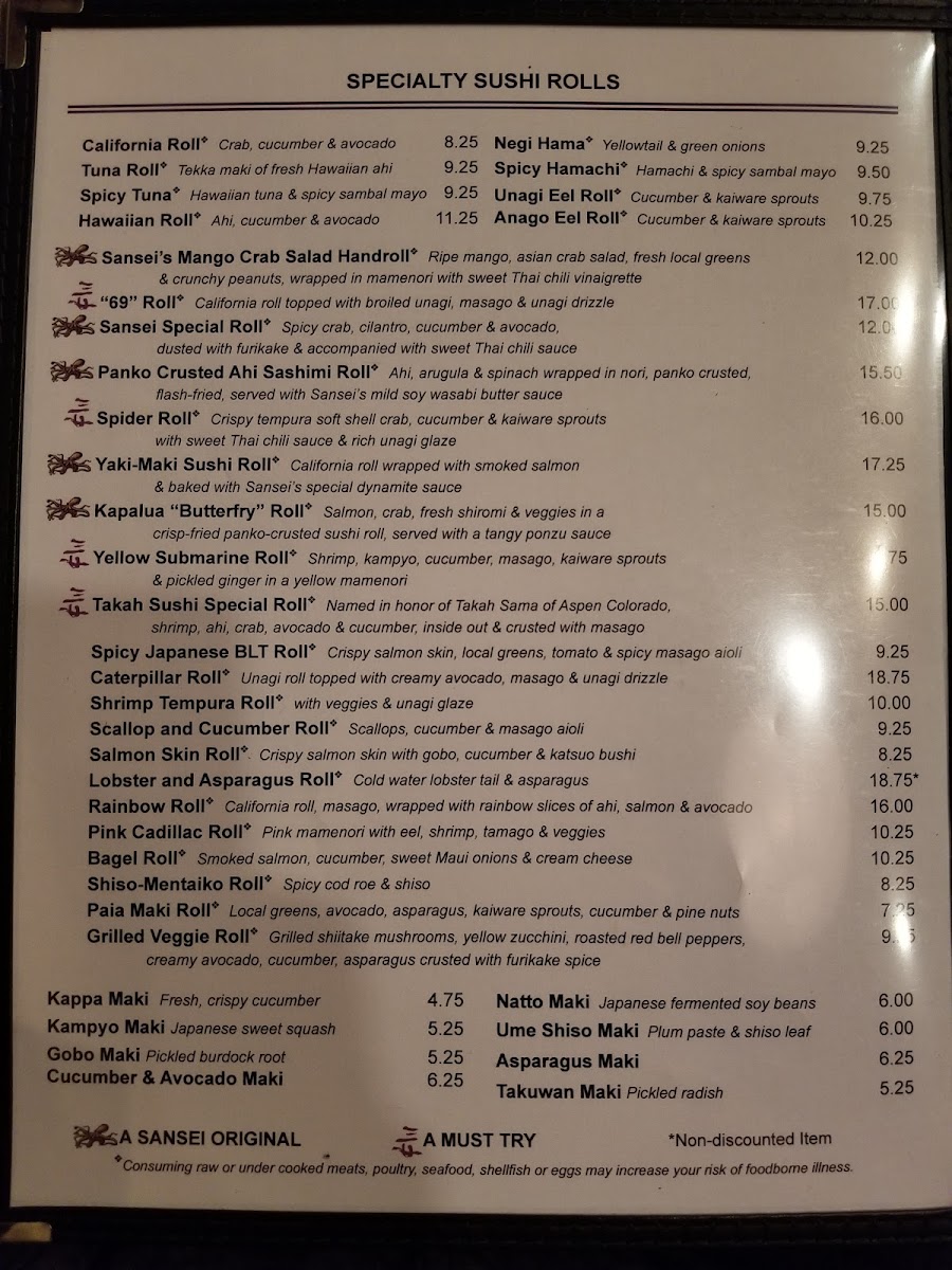 Alongside the exquisite cuisine, Sansei offers a welcoming and friendly service experience, ensuring that every visit feels like a cherished moment. Their happy hour, held from 5 to 6 PM, brings tantalizing discounts on food, making it an excellent opportunity to sample a wider array of dishes without breaking the bank.